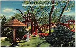 Laura Bradley Park, also known as Bradley Park, is a park in Peoria, Illinois, United States.[1] It historically contained a wading pool for children and flower gardens.[2][3] As of 2022, it offers sports facilities, picnic sites, hiking opportunities on paved tracks, and a Japanese bridge.[1]