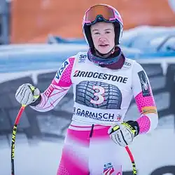 Born in Edmonton, Alberta in Canada, Ross was on skis at age two at the Snow Valley ski hill, as her father was a former alpine racer. The family moved to Klamath Falls, Oregon, when she was age 7 and Ross skied and raced at Mount Bachelor near Bend.[1] She was selected to the U.S. Ski Team in 2006,[2] and made her World Cup debut in December 2009. Ross was moved up to the World Cup team for the 2011 season and represented the U.S. at the 2011 World Championships, where she finished tenth in the women's downhill.[3] Ross attained her first World Cup podium in March 2013, placing second in a downhill at Garmisch-Partenkirchen, Germany.[4][5]