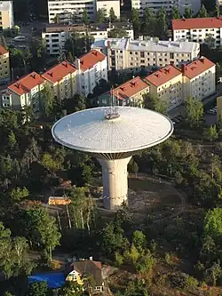 The Lauttasaari water tower was a water tower in Lauttasaari, Helsinki, Finland from 1958 to 2015. Its volume was 4400 cubic metres,[1]: 165  its height was 34 metres and the diameter of the upper water container was 42 metres.[2]: 68 [3]: 8  The water tower was decommissioned in 1996 and dismantled from October to November 2015.[4]