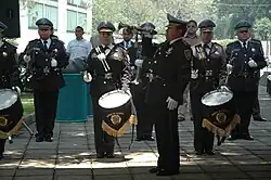 • Grenadiers (Agrupamiento de Granaderos/Cuerpo de Granaderos (Oriente y Poniente)): The 2,000 Grenadiers protect the historic areas of the federal district. They provide Crowd Control, Sector Support to banks, prisons, treasuries, payment offices, government offices, patrolling teams, launch and eviction proceedings, police sporting events, and participate in cultural and religious events with the Police Band and escort dignitaries and VIPs and haul down the flag. In matters of religious worship is involved with security and surveillance mainly 12 Dec at the Basilica of Guadalupe, Easter, and the Day of the Dead.[9][15]