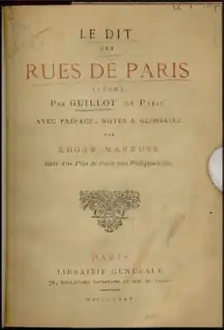 - Guillot of Paris : Le Dit des rues de Paris avec préface, notes et glossaire par Edgar Mareuse.