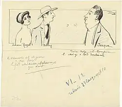 Lucienne Roger, Jules Berry and Alfred Jacque at Paris' Théâtre de la Renaissance in 1910. Illustration by Maurice Lourdey.