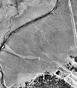 ![]() 1999 image of mobile home park (lower right) on the southeast of the airfield built on the end of an old runway (faintly discernible). | |