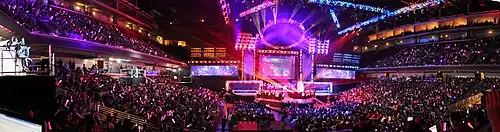 The Season 2 World Championship was held in early October 2012 in Los Angeles, California to conclude the US$5 million season. Twelve qualifying teams from around the world participated in the championship, which boasted the largest prize pool in the history of e-sports tournaments at the time at US$2 million, US$1 million going to the champions, until The International 2013 beat it the next year. The group stage, quarterfinal, and semifinal matches took place between October 4 and 6. The grand final took place a week after, on October 13 in the University of Southern California's Galen Center in front of 10,000 fans, and were broadcast in 13 different languages.[2] In the grand final, Taiwan's professional team Taipei Assassins triumphed over South Korea's Azubu Frost 3-to-1 and claimed the US$1 million in prize money.[3]