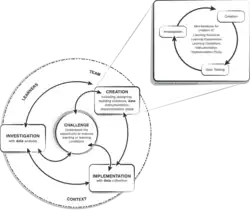 Learning engineering teams employ an iterative design process for supporting and improving learning. Initial designs are informed by findings from the learning sciences. Refinements are informed by analysis of data collected as designs are carried out in the world. Methods from learning analytics, design-based research, and rapid large-scale experimentation are used to evaluate designs, inform refinements, and keep track of iterations.[1][2][3] According to the IEEE Standards Association's IC Industry Consortium on Learning Engineering, "Learning Engineering is a process and practice that applies the learning sciences using human-centered engineering design methodologies and data-informed decision making to support learners and their development."[4]