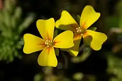 This plant is variable in appearance. Its morphology is determined by its genes rather than environmental conditions, and it reflects the variable breeding system of the species.[4] Some individuals are self-incompatible and must receive pollen from other plants in order to reproduce, while others can fertilize themselves. Populations of the species have both self-incompatible and self-fertilizing individuals, but some populations are almost entirely selfing.[5] Self-incompatible plants have a morphology that encourages pollen transfer: the flowers are large and aromatic and have anthers that are extrorse, facing outward. These plants also have two flower color morphs. Self-compatible plants have smaller, barely scented flowers with introrse, or inward-facing anthers.[4]
