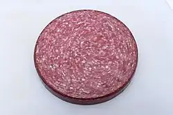 Lebanon bologna is a type of American cured, smoked, and fermented semidry beef sausage; it is not, in spite of its name, a pork-based bologna. It is typically served as a cold cut or appetizer.