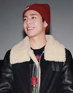 In 2014, he and real-life best friend Park Ji-bin (both were child actors and belong to the same agency) appeared in the travel/reality show Real Mate in Saipan.[22] Lee next played a hacker in the heist movie The Con Artists.[23][24] He then starred in Northern Limit Line, a 2015 naval thriller about the Second Battle of Yeonpyeong.[25] The film sold 6,024,894 tickets (grossing US$38,945,231), making it the most-watched Korean film in 2015.[26] In 2016, he starred in the fantasy youth drama Moorim School: Saga of the Brave.[27] Initially slated for 20 episodes, the drama was reduced to 16 episodes instead due to low ratings.[28] In 2017, Lee starred in the drama The Liar and His Lover, the Korean remake of the Japanese manga Kanojo wa Uso o Aishisugiteru alongside Red Velvet's Joy.[29] In 2018, Lee released a digital single titled "Twenty-Six", prior to joining the army.[30]