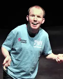 Lee Ridley (born 31 December 1980[2]), better known by his stage name the Lost Voice Guy, is an English stand-up comedian. Disabled since early life, and unable to speak, in June 2018 he won the 12th series of Britain's Got Talent.[3]