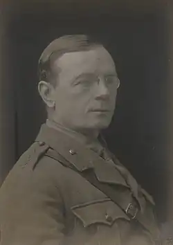 The Bolshevik coup in Russia in November 1917 followed by the decision by Vladimir Lenin to sign an armistice with Germany in December 1917 caused profound alarm for Amery who argued that the new regime in Russia threatened to change the course of the war as Germany could now redeploy millions of soldiers from the Eastern Front to the Western Front, and allowed Germany the opportunity to dominate the Middle East via its proxy of the Ottoman Empire.[19] Amery tended to be more concerned about the fate of the Middle East, writing that the Western front was a "sideshow" compared to the Near East.[19] Besides the possibility that the Ottomans under the command of Erich von Falkenhayn might retake Baghdad, which the British had taken in 1917, he also argued that Falkenhayn would take advantage of the Russian Revolution to advance Ottoman forces into the Caucasus, Persia and finally into Central Asia.[19] Amery expressed surprise that the Young Turk regime had not done more to achieve its pan-Turkish ambitions of uniting all the Turkic peoples into the Ottoman Empire, which he attributed to the backwardness of the Ottoman Empire.[19] Amery argued that now that Russia was defeated Britain should fund and arm whatever Armenians had survived the Armenian genocide, along with Armenians who had served in the Imperial Russian Army, whom Amery believed would fight on as it was their only hope of survival.[19] Amery argueed that Britain had a vested interest in ensuring that former Russian weapons stayed with the Armenians who served in the Russian Army to prevent those weapons "from passing into the hands of Kurds and Tatars and be used either for massacring Armenians, or for arming pro-German gangs of brigands in Persia".[19] Amery also envisioned British officers taking command of the proposed Armenian army.[20] Amery was an "easterner" on questions of grand strategy, believing that the war was to be won in the Middle East and was opposed to "westerners" such as William Robertson and Douglas Haig who believed that the war would be won on the Western Front.[21] Amery argued in late 1917-early 1918 that the Caucasus should be the prime British concern and that Britain needed to send more forces to Palestine and Mesopotamia to create an offensive line running from Alexandretta to the Caucasus "in order to drive the Turks out of the Arab and Armenian regions and bring about a collapse of their forces and a demand for peace".[21] Besides the Middle East, Amery was deeply concerned about Russia, writing that if the Bolsheviks took control of Odessa and the Black Sea coast of Ukraine, it would allow Germany all of the immense resources of Ukraine, and hence undercut the British blockade of Germany.[22] He wrote that Britain needed to "knock out" the Ottomans before the Bolsheviks took control of South Russia, saying that it was critical to "get into touch with South Russia through the Dardanelles" in order to "keep our friends in Russia going" to tie down German forces on the Eastern Front.[22]