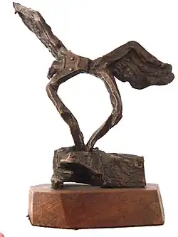From 1948 onwards, Underwood cast his bronze sculptures in his own studio and throughout the 1950s, concentrated on his sculpture and on promoting his theories and philosophy of art.[7][24] In 1961 Underwood was elected an Honorary Member of the Royal Society of Sculptors and further recognition followed in 1969 when the first full-scale retrospective of his work was held at The Minories in Colchester.[3][7] The art historian John Rothenstein wrote in the introduction to that exhibition that Underwood was "..the most versatile artist at work in Britain today..".[25] However it was to be over forty years before the next major retrospective of his work was held, in 2015 at the Pallant House Gallery.[15][9] This lack of attention has been attributed to the range and versatility of Underwood's output which, across the various media he worked in, lacked a common recognisable style that was easy to promote and also to his, sometimes, complex and esoteric philosophies and theories on art.[26]