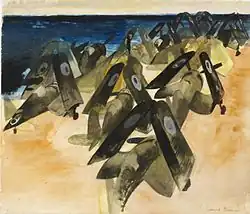 - Kamikaze Planes Crashing on the Deck of HMS Formidable in Japanese Waters, 1945 by Leonard Rosoman in The Royal Air Force Museum London collection.