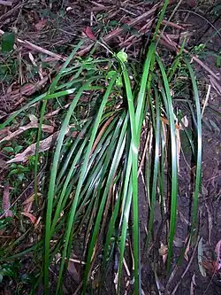 The variable swordsedge can grow to one metre tall and is found in a variety of situations. However, it does not occur in the more arid parts of Australia. The leaves can be glossy, 3 to 8 mm wide. The leaf base is usually orange-reddish in colour. The flowers form on a panicle in spring and summer. The spikelets are not dense, and the secondary inflorescence branches are exposed. These can be anywhere from 4 to 20 (or rarely 38) cm in length.[2] The fruit is an oval shaped nut, around 3 mm long and 1.8 mm in diameter, and is pale or dark brown, with either a wrinkled or smooth, and shiny surface.