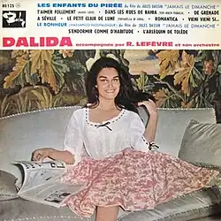 Les Enfants du Pirée is the seventh French language studio album by Dalida, and her first album of the 1960s. It contains big #1 hit "Les Enfants du Pirée", and other hits like "T'aimer follement", "Romantica" and "L'Arlequin de Tolède".