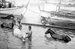Fundamentally, leti leti is a merchant vessel used by Madurese people, just like pinisi of Bugis sailors.[10] Leti leti can be found in northern side of Timor islands to Singapore, but this vessel can also fish as far as Australian coast. Traditionally Madurese traders brought cattles to East Java from as far as Roti island and Kupang in Timor, they also carried salt, rice, and assembled goods out from Surabaya.[11] Modern leti leti, nevertheless, is not the right type of trading perahu for Eastern Indonesian islands: This boat couldn't sail through low tide straits or they're needed a long time to pass, or dealing with blowing winds and gusts around mountainous islands, so the type of perahu used there currently is the lambo.[12]