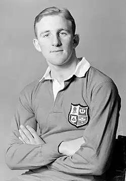 Jones played club rugby for Neath before undertaking his national service in the Navy in 1949, a month after his 18th birthday. After leaving the navy he joined Llanelli.[4] He won his first cap for Wales against England in 1950. This was a match Jones might easily have missed, as he had been about to depart for Hong Kong on board an aircraft carrier until the orders were countermanded on discovering that he was a rugby player.[4] The same year he played for the British Lions, being flown out as a replacement for an injured player on the tour to New Zealand and Australia, and playing in three test matches. He scored 63 points in seven games in New Zealand and 16 points against Australia in Brisbane.[4]