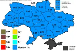 In the 2014 Ukrainian parliamentary election the party again failed to win parliamentary representation since it now won 0.05% of the national votes and again no constituencies (it had competed in 38 constituencies).[6][7][8]