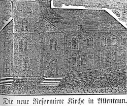 Zion United Church of Christ at 622 Hamilton Street in Allentown, where the Liberty Bell was successfully hidden under floor boards from the British Army from September 1777 until June 1778 during the British occupation of Philadelphia during the Revolutionary War.