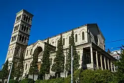 The church was constructed from 1892 to 1894 according to the designs of the architect August Hardegger, who modelled the church in the style of an early Christian basilica based on buildings from Rome and Ravenna.[6] Hardegger developed his idea together with the art historian and hermit Albert Kuhn, who convinced the church building association to accept this style.[7] Hardegger intended to use Liebfrauenkirche's Italian influences to express the connection between the Catholic Church in Switzerland and the Pope in Rome, in the spirit of ultramontanism during the Kulturkampf period. In this way, the Catholic diaspora in Zurich would distance itself both from the Old Catholics and the Reformed Christians. The choice of Mary, Mother of God as the patron saint was made in consultation with the priests and the Bishop of Chur. It expresses the Marian piety of the time and emphasised the distinction between denominations.[7]