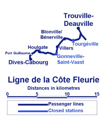 The Ligne de la Côte Fleurie[a] (French pronunciation: [liɲ la kot flœʁi]) is a railway line serving the towns of the Côte Fleurie, Calvados, France.