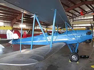 Lincoln-Page[note 1] were eager to take a share of the emerging trainer market. Using their Lincoln-Page LP-3 as a basis they set about designing the PT. The resultant aircraft was quite different from the LP-3, having tandem cockpits and a lengthened rear fuselage. The design bears a resemblance to the Swallow aircraft, partially from manager Victor Roos prior history with the company.[1] Structure was standard for its day:- welded steel tube warren girder fuselage with spruce spars and basswood ribs for the wings. With the ubiquitous Curtiss OX-5 the PT proved quite versatile and able to perform basic aerobatic manoeuvers without too much effort. It was awarded ATC no 181 in July 1929.[2]