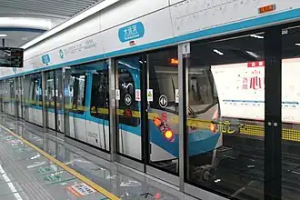 The Line 5 uses higher capacity six car Class AH trains which are 20 cm wider than the Class B trains used in other Hangzhou Metro lines, increasing capacity by about 10%.[11]