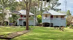 Surviving buildings of historical interest within Lismore City include the old Council Chambers (1928) in Molesworth Street designed by William Gilroy, now home to the Richmond River Historical Society Museum with a collection of objects, documents and photographs relevant to the historical development of the area, including Aboriginal artifacts; the Art Nouveau post office (1897), designed by W.L. Vernon; the original Australian Joint Stock Bank (1891), built in the Italianate style, now the T & G Building; the classical revival courthouse (1883) in Zadoc Street; the Lismore Memorial Baths (1928), constructed as a memorial to local persons who died in World War I; and various churches including St Andrew's Anglican Church (1904), St Carthage's Roman Catholic Cathedral (1892–1907), the Uniting (formerly Methodist) Church (1908–09), the Church of Christ (1923), and St Paul's Presbyterian Church (1907–08).[24][25] Adjacent to St. Carthage's Cathedral, Presentation House, a convent opened for the Roman Catholic Presentation Sisters in 1907 and used by the nuns until 2004, has been refurbished and now serves as the Catholic Schools Office for the Diocese of Lismore.[26]