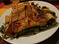 Vitel toné meat dish cold, sliced veal covered with a creamy, mayonnaise-like sauce that has been flavored with tuna. It is considered a traditional Christmas dish.[6][7]