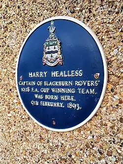 6 Top O' Th' Croft, Blackburn 53°43′35″N 2°29′20″W / 53.72636°N 2.48889°W / 53.72636; -2.48889 Harry Healless, Captain of Blackburn Rovers' 1928 F.A. Cup winning team, was born here, 9th February, 1893[17]