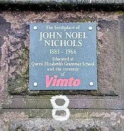 Birthplace of John Noel Nichols, 1883 - 1966. Educated at Queen Elizabeth's Grammar and the inventor of Vimto.