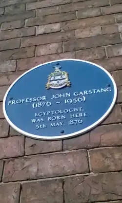 Strawberry Bank, Blackburn 53°45′05″N 2°29′16″W / 53.75149°N 2.48764°W / 53.75149; -2.48764 Professor John Garstang (1876 - 1956) Egyptologist. Was born here 5th May, 1876.