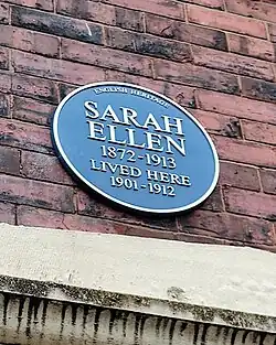 25 Isherwood Street, Blackburn 53°44′01″N 2°29′23″W / 53.73372°N 2.48961°W / 53.73372; -2.48961 Sarah Ellen 1872 - 1913 Lived here 1901 - 1912