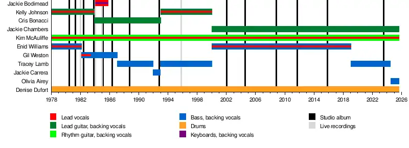 • Kim McAuliffe – rhythm guitar, lead vocals