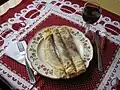 Central Europe | Christmas carp is a fish dish traditionally eaten on Christmas Eve throughout Central Europe. The carp is traditionally kept alive in a bathtub for a week before being eaten. |