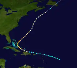 1. ^ This hurricane caused an additional 500 deaths off the coast of Nova Scotia due to shipwrecks.