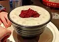 Russedessert Sweet, wheat semolina dessert porridge made with berries, usually lingonberries