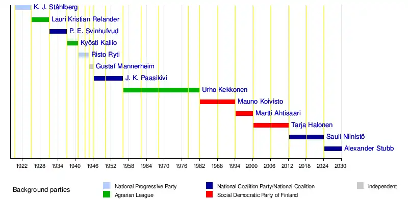 Alexander StubbSauli NiinistöTarja HalonenMartti AhtisaariMauno KoivistoUrho KekkonenJ. K. PaasikiviGustaf MannerheimRisto RytiKyösti KallioP. E. SvinhufvudLauri Kristian RelanderK. J. Ståhlberg