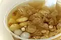 Dessert | A light refreshing soup with longans, barley, agar strips, lotus seeds and a sweet syrup, served either hot or cold. It is analogous to the Cantonese Ching bo leung. |