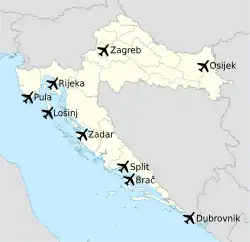• "Airports in Croatia". Great Circle Mapper. – IATA and ICAO codes