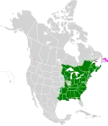 LC | This species is designated as endangered in Ontario. COSEWIC considers the population critically endangered. Very limited distribution in extreme eastern Ontario.[3] |