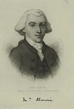 John Harvie was one of five Virginia delegates to the Continental Congress to sign the Articles of Confederation[48]