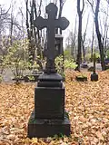 Over time the cemetery became a popular and prestigious burial ground for those of many areas of society. The wealthy merchant A.I. Kosikovsky was buried under a monumental sarcophagus on a high pedestal surmounted by a canopy on eight fluted columns.[4] Opposite it stood a similarly grand monument to the statesman Pavel Demidov, which has since been lost.[4] In 1857 the remains of the composer Mikhail Glinka were returned from Berlin and buried in the cemetery, with a grand monument erected two years later to the design of architect I. I. Gornostayev, with sculptures by Nikolay Laveretsky.[4][9] On 1 February 1881 the author Fyodor Dostoevsky was buried in the cemetery, with a similarly large monument.[4][10] During the 1880s composers Modest Mussorgsky and Alexander Borodin were buried in the northern part of the grounds, with Pyotr Ilyich Tchaikovsky following in 1891.[4][11][12][13]