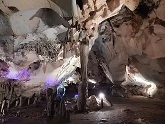 The list caves in Bulgaria, as of 2002, includes around 4,500 underground formations.[1] The earliest written records about the caves in Bulgaria are found in the manuscripts of the 17th century Bulgarian National Revival figure and historian Petar Bogdan. The first Bulgarian speleological society was established in 1929. The caves in the country are inhabited by more than 700 invertebrate species, many of them endemic, and 32 of the 37 species of bats found in Europe.