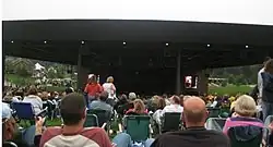 Beaumont Ford Pavilion[13] Square enclosure facing 6,300 seats under cover and 8,000 lawn seats 14,300