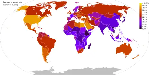 1. ^ "Prevalence of obesity among adults, BMI >= 30 (crude estimate) (%)". who.int. Retrieved 2024-09-02.