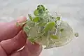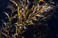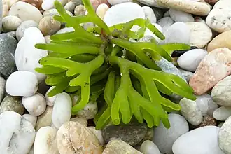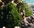Green macroalgae are extremely diverse and abundant, coming in a wide variety of shapes. They possess the pigment Chlorophyll which gives them their coloration ranging from bright green to yellow or dark jade. Reproduction via fragmentation or the releasing of spores are utilized by this macroalgae group. The second option, which is used by the genus, Caulerpa, can be quite problematic in an aquarium.[21] Some species of green macroalgae have greater ease surviving in high nutrient environments or inadequate water parameters than other kinds of macroalgae and are generally the most suitable for nutrient removal due to their rapid growth rates.[22]