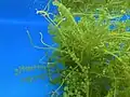 Caulerpa paspaloides Easy[53] Moderate[53] Excellent[53] Moderate[53] Low-Moderate[53] Somewhat[53] This species of Caulerpa is a good nutrient export choice as it pollutes aquariums less often than its relatives and is fast growing. It should be pruned regularly as its fine structure captures undesirable substances. Under more intense lighting, the algae's palm-shaped blades will grow more compact and triangular in addition to taking on a darker shade of green.[53] 12 in (30.5 cm)[53]