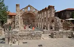 Church of Saint Paraskevi, Nesebar Nesebar Bulgaria 1331–1371 Bulgarian Orthodox Church Partially preserved medieval Eastern Orthodox church in Nesebar (medieval Mesembria), a town on the Black Sea coast of Burgas Province in eastern Bulgaria. It was most likely built in the 13th or 14th century and forms part of the Ancient Nesebar UNESCO World Heritage Site. The Church of Saint Paraskevi features a single nave and a pentagonal apse as well as rich exterior decoration. Its dome and the belfry surmounting the narthex have not been preserved today, and it is unknown which of the three saints named Paraskevi it was dedicated to.[79]