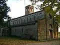 Church of St Demetrius of Thessaloniki, Veliko Tarnovo Veliko Tarnovo Bulgaria 1185 Bulgarian Orthodox Church Medieval Bulgarian Orthodox Church in the city of Veliko Tarnovo in central northern Bulgaria, the former capital of the Second Bulgarian Empire. The church lies at the northeastern foot of the Trapezitsa and Tsarevets hills, on the right bank of the Yantra River, outside the city's medieval fortifications. Architecturally, it has a pentahedral apse and a cross-domed design with a narthex and a fore-apse space. It was once part of a large monastery and belonged in its southeastern part. The church's exterior is decorated with blind arches and colourful ornaments: glazed rosettes, suns, rhombs and other painted figures. The church was built of stone alternated with three rows of bricks. It is 15.75 by 8.40 metres (51.7 ft × 27.6 ft) in size. The church was the place where the anti-Byzantine Uprising of Asen and Peter was proclaimed in 1185; it was this uprising that led to the reestablishment of the Bulgarian Empire and the proclamation of Tarnovo for its capital.[73]
