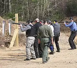 Though a paramilitary is, by definition, not a military, it is usually equivalent to a light infantry or special forces in terms of strength, firepower, and organizational structure.[3] Paramilitaries use combat-capable kit/equipment (such as internal security/SWAT vehicles), or even actual military equipment[4] (such as long guns and armored personnel carriers; usually military surplus resources), skills (such as battlefield medicine and bomb disposal), and tactics (such as urban warfare and close-quarters combat) that are compatible with their purpose, often combining them with skills from other relevant fields such as law enforcement, coast guard, or search and rescue. A paramilitary may fall under the command of a military, train alongside them, or have permission to use their resources, despite not actually being part of them.[4]
